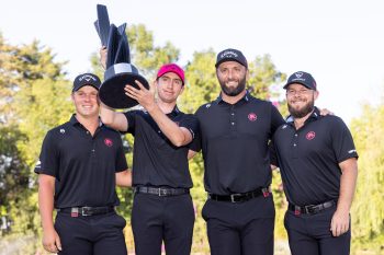 LIV Golf Mexico City team champions Legion XIII (L-R) Caleb Surratt, Tom McKibbin, Captain Jon Rahm and Tyrrell Hatton. (Photo by LIV Golf)